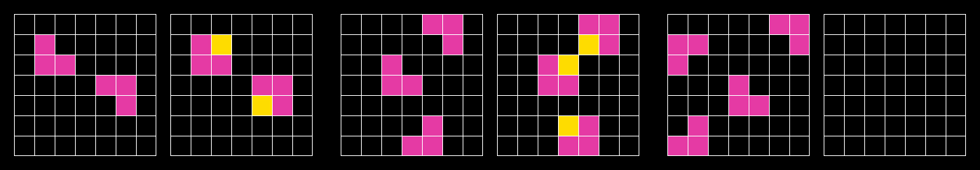 test: a list of one to three input/output pairs (typically one.) Your model should apply the inferred rule from the train set and construct an output solution. You will have access to the output test solution on the public data. The output solution on the private evaluation set will not be revealed.